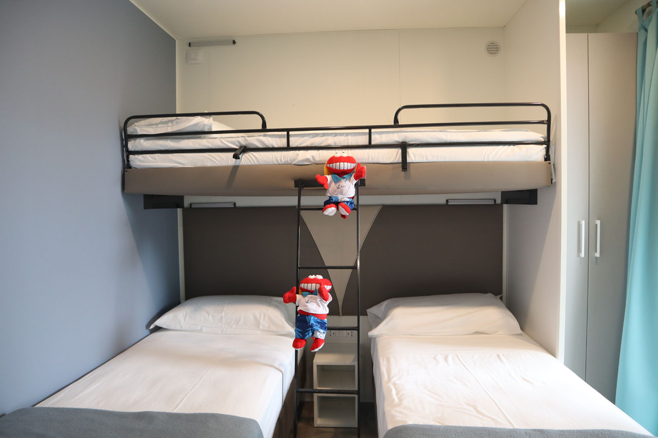 Das Lido Platinum ist 31 Quadratmeter große, besteht aus einem Schlafzimmer mit Doppelbett, einem Schlafzimmer mit 3 Einzelbetten, 2 Badezimmern und einer Küche mit Wohnzimmer, ist Teil der neuen Generation von Mobilheimen, die von Crippa Concept unterzeichnet wurden. Mit dem Lido Platinum können Sie Ihren Aufenthalt in unserer Einrichtung mit dem Komfort von Aktivitäten genießen, die Ihnen zur Verfügung stehen.